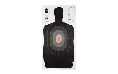 Action Target B-27E Pros Target, Shaded Scoring Rings Starting Outside And Going Dark To Light With A Bright Orange Center, Silhouette Cut Off Below Ring 7, 23"x35", 100 Per Box B-27EPROS-100