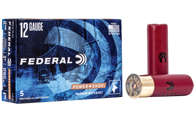 Federal PowerShok, 12 Gauge, 3", 4 Buck, Mag Dram, Buckshot, 41 Pellets, 5 Round Box F1314B