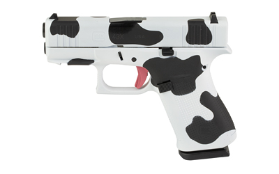 GLOCK 43X, Striker Fired, Semi-automatic, Polymer Frame Pistol, Sub-Compact, 9MM, 3.41" Barrel, Custom Cow Print Cerakote Finish by Skydas, Fixed Sights, 10 Rounds, 2 Magazines UX4350204FRNMOO