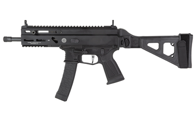 Grand Power Stribog SP9A3, Semi-automatic, Striker Fired, Aluminum Frame Pistol, 9MM, 8" Threaded Barrel, 1/2X28 Thread Pitch, Ambidextrous Controls, Folding Pistol Brace, M-LOK Handguard, Matte Finish, Black, 30 Rounds, 3 Magazines 850003223117
