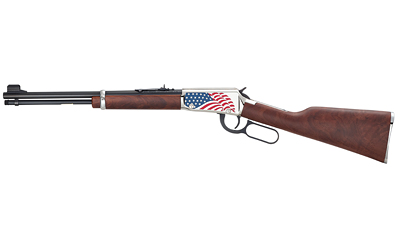 Henry Repeating Arms H1 America's 250th Anniversary Tribute Edition, Compact Lever Action Rifle, 16.5" Barrel, Rounded Blued Steel, Straight Grip Fancy American Walnut Stock, American Flag Cerakote, Adjustable Semi-Buckhorn Rear Sight, Hooded Blade Front Sight, 13 Rounds, Engraved and Silver Filled Logo on Buttstock, Large Loop Lever H001Y-250