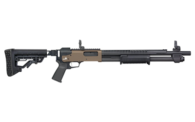 Mossberg 509R Chisel, Pump-Action Shotgun, 12 Gauge, 2.75" Chamber, 18.5" Barrel, Cylinder Choke, Cerakote Finish, FDE Receiver, Black Furniture, Folding Adjustable Buttstock, Magpul MOE Grip, Magpul MBUS, Rotary Safety Selector, 6 Rounds 50233
