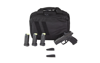 Black Polymer Frame Nitrocarburized Steel Slide Front White Dot Sight, Black Serrated Rear Sight Flat Face Trigger, 5LB Pull Optic Ready Slide Viridian RFX11 Green Dot Sight RMR Optic Plate Savior Specialist Bag (4) Magazines, (3) 15 Round and (1) 12 Round