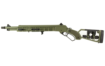 This Smith & Wesson 1854 Series rifle is an RSR Exclusive customized by Mad Pig Customs. This Exclusive features a custom Foliage Green and Elite Blackout Two Tone Cerakote finish along with a Midwest Industries Pistol Grip Stock and Extended Handguard, Angled Spade Reaper Muzzle Brake, and a Mad Pig Customs Action and Trigger Job with an enhanced custom lever.