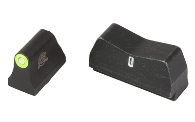 XS DXT2 Standard Dot Night Sights offer superior front sight visibility in all lighting conditions. DXT2 Standard Dot sights drive focus to the front sight using a high-contrast front and a low profile V-notch rear. DXT2 Standard Dot front sights use a patent pending glow dot that absorbs light and glows in low light levels before it is dark enough to see the tritium. The increased surface area of the convex dot increases light absorption, intensifying the charge of the glow properties of the dot. The dot-the i sight picture, with a tritium dot in the front sight and a tritium bar in the rear, prevents confusing the front and rear sight in high-stress situations. In most gunfights, the victim and attacker are both moving and the victim's focus is drawn to the threat. The wide field of view increases visibility of the front sight and of the threat downrange. Outside Diameter Standard Dot 0.140"; fits in common holsters. Installation might require filing to fit sight to dovetail, especially with Walther PDP. Do not use sight press/pusher tool. Fits Glock models 17, 19, 22, 23, 24, 26, 27, 31, 32, 33, 34, 35, 36; Taurus G3c, GX4, and new production G3; Walther PDP. Suppressor Height and lower third co-witnesses with Glock factory cut and RMR.